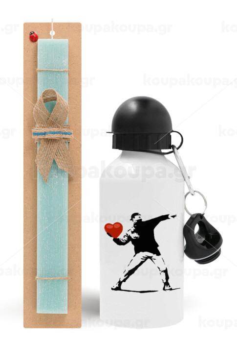 Banksy (The heart thrower), Πασχαλινή Λαμπάδα με παγούρι μεταλλικό αλουμινίου (500ml) & λαμπάδα αρωματική πλακέ (30cm) (ΤΙΡΚΟΥΑΖ)