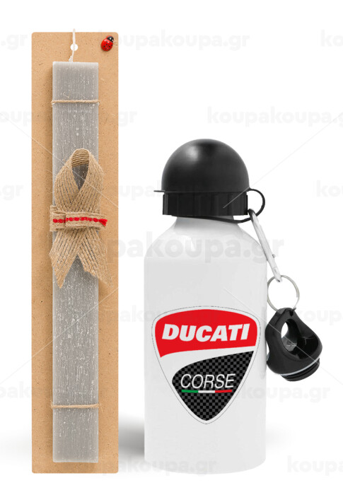Ducati, Πασχαλινή Λαμπάδα με παγούρι μεταλλικό αλουμινίου (500ml) & κερί αρωματικό πλακέ (30cm) (ΓΚΡΙ)