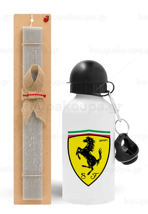 Ferrari, Πασχαλινή Λαμπάδα με παγούρι μεταλλικό αλουμινίου (500ml) & κερί αρωματικό πλακέ (30cm) (ΓΚΡΙ)