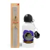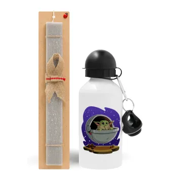 Baby Yoda mandalorian, Πασχαλινή Λαμπάδα με παγούρι μεταλλικό αλουμινίου (500ml) & κερί αρωματικό πλακέ (30cm) (ΓΚΡΙ)