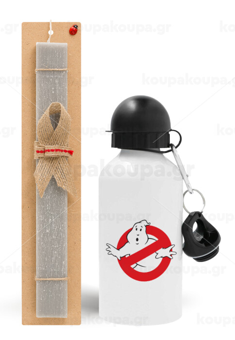 The Ghostbusters, Πασχαλινή Λαμπάδα με παγούρι μεταλλικό αλουμινίου (500ml) & κερί αρωματικό πλακέ (30cm) (ΓΚΡΙ)