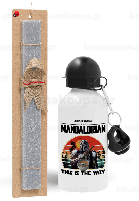 Mandalorian, Πασχαλινή Λαμπάδα με παγούρι μεταλλικό αλουμινίου (500ml) & κερί αρωματικό πλακέ (30cm) (ΓΚΡΙ)