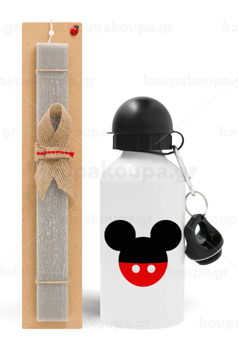 Mickey head, Πασχαλινή Λαμπάδα με παγούρι μεταλλικό αλουμινίου (500ml) & κερί αρωματικό πλακέ (30cm) (ΓΚΡΙ)