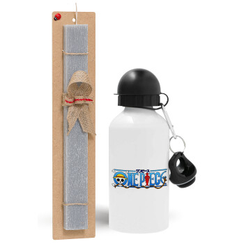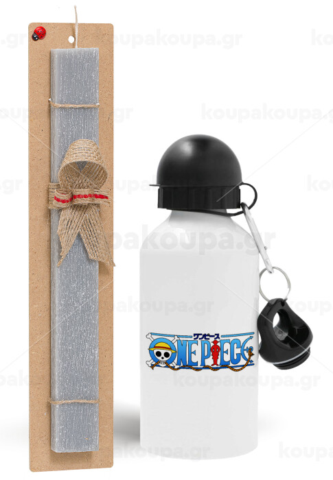Onepiece logo, Πασχαλινή Λαμπάδα με παγούρι μεταλλικό αλουμινίου (500ml) & κερί αρωματικό πλακέ (30cm) (ΓΚΡΙ)