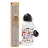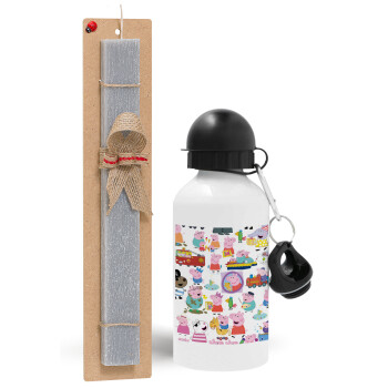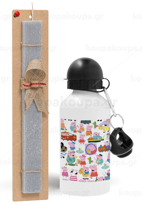 Peppa pig Characters, Πασχαλινή Λαμπάδα με παγούρι μεταλλικό αλουμινίου (500ml) & κερί αρωματικό πλακέ (30cm) (ΓΚΡΙ)