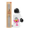 Pink Panther cartoon, Πασχαλινή Λαμπάδα με παγούρι μεταλλικό αλουμινίου (500ml) & κερί αρωματικό πλακέ (30cm) (ΓΚΡΙ)