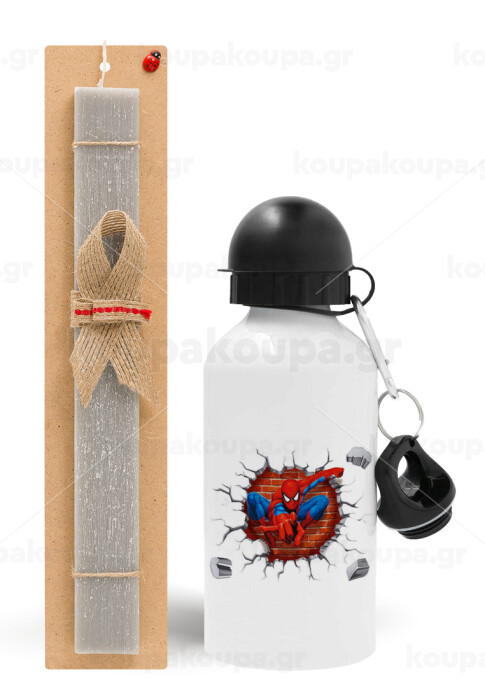 Spiderman wall, Πασχαλινή Λαμπάδα με παγούρι μεταλλικό αλουμινίου (500ml) & κερί αρωματικό πλακέ (30cm) (ΓΚΡΙ)