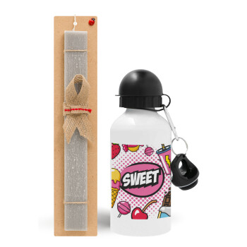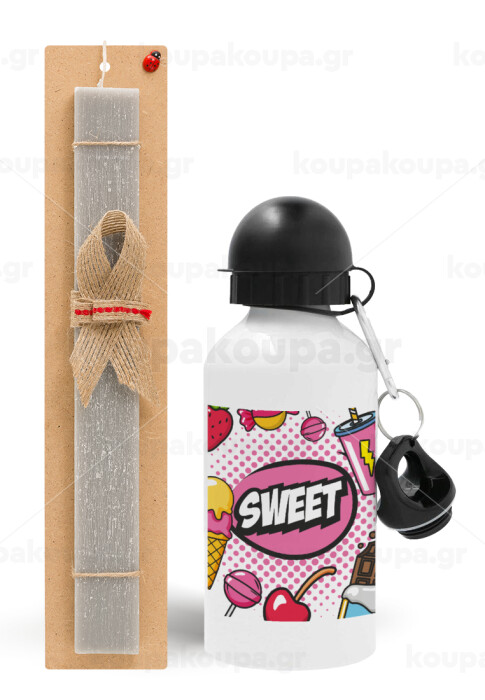 SWEET, Πασχαλινή Λαμπάδα με παγούρι μεταλλικό αλουμινίου (500ml) & κερί αρωματικό πλακέ (30cm) (ΓΚΡΙ)