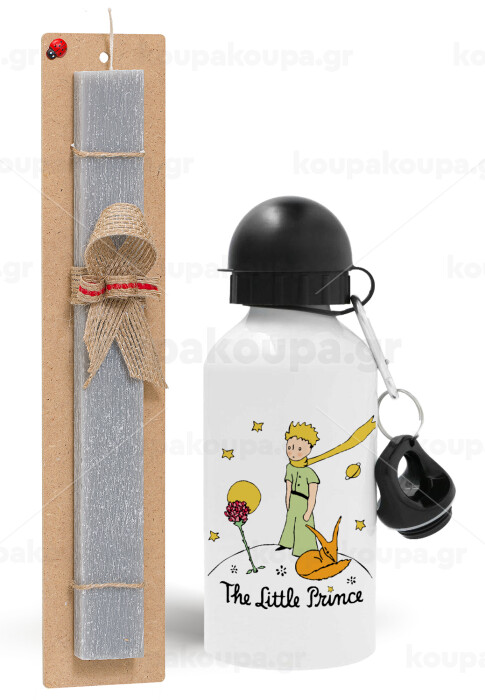 Ο μικρός πρίγκιπας classic, Πασχαλινή Λαμπάδα με παγούρι μεταλλικό αλουμινίου (500ml) & κερί αρωματικό πλακέ (30cm) (ΓΚΡΙ)