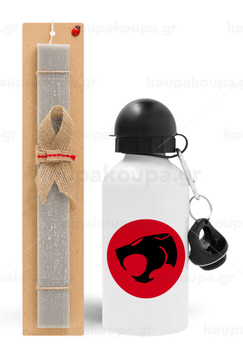 Thundercats, Πασχαλινή Λαμπάδα με παγούρι μεταλλικό αλουμινίου (500ml) & κερί αρωματικό πλακέ (30cm) (ΓΚΡΙ)