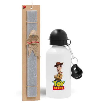 Woody cowboy, Πασχαλινή Λαμπάδα με παγούρι μεταλλικό αλουμινίου (500ml) & κερί αρωματικό πλακέ (30cm) (ΓΚΡΙ)