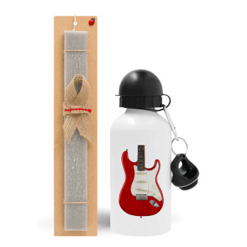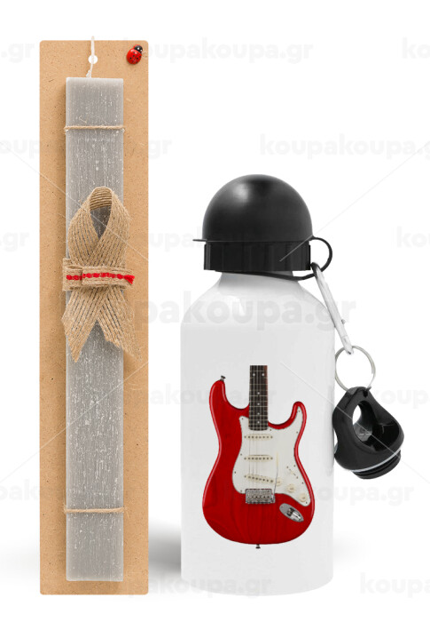 Guitar stratocaster, Πασχαλινή Λαμπάδα με παγούρι μεταλλικό αλουμινίου (500ml) & κερί αρωματικό πλακέ (30cm) (ΓΚΡΙ)