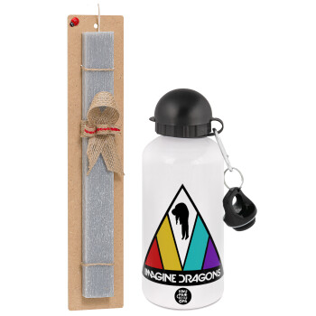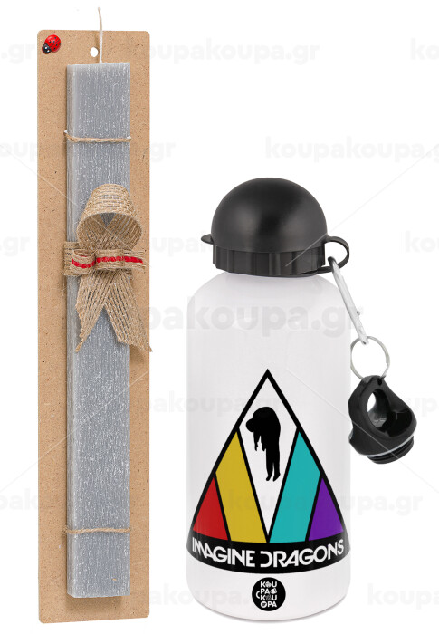 Imagine Dragons, Πασχαλινή Λαμπάδα με παγούρι μεταλλικό αλουμινίου (500ml) & κερί αρωματικό πλακέ (30cm) (ΓΚΡΙ)