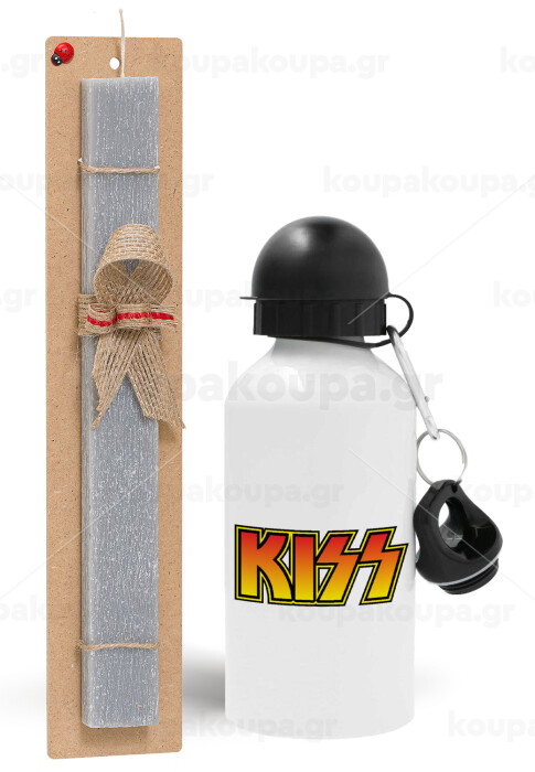 KISS, Πασχαλινή Λαμπάδα με παγούρι μεταλλικό αλουμινίου (500ml) & κερί αρωματικό πλακέ (30cm) (ΓΚΡΙ)