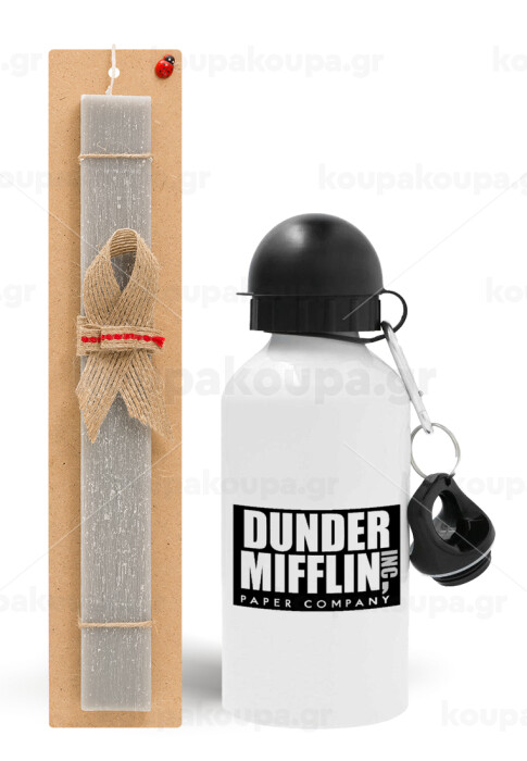 Dunder Mifflin, Inc Paper Company, Πασχαλινή Λαμπάδα με παγούρι μεταλλικό αλουμινίου (500ml) & κερί αρωματικό πλακέ (30cm) (ΓΚΡΙ)