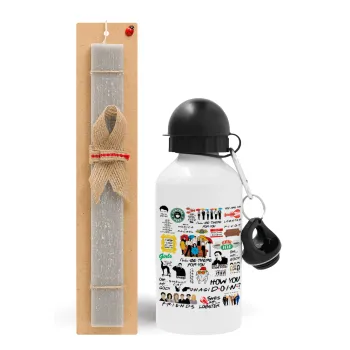 Friends, Πασχαλινή Λαμπάδα με παγούρι μεταλλικό αλουμινίου (500ml) & κερί αρωματικό πλακέ (30cm) (ΓΚΡΙ)