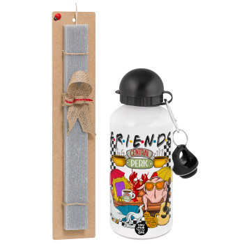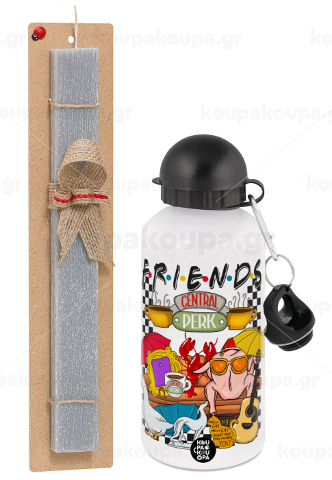 Τα φιλαράκια, Πασχαλινή Λαμπάδα με παγούρι μεταλλικό αλουμινίου (500ml) & κερί αρωματικό πλακέ (30cm) (ΓΚΡΙ)
