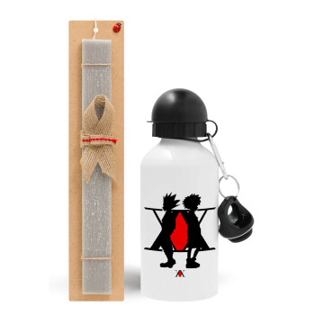 hunter x hunter, Πασχαλινή Λαμπάδα με παγούρι μεταλλικό αλουμινίου (500ml) & κερί αρωματικό πλακέ (30cm) (ΓΚΡΙ)