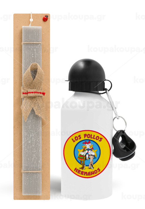 Los Pollos Hermanos, Πασχαλινή Λαμπάδα με παγούρι μεταλλικό αλουμινίου (500ml) & κερί αρωματικό πλακέ (30cm) (ΓΚΡΙ)