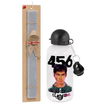 Squid game 456 Gi-Hun, Πασχαλινή Λαμπάδα με παγούρι μεταλλικό αλουμινίου (500ml) & κερί αρωματικό πλακέ (30cm) (ΓΚΡΙ)