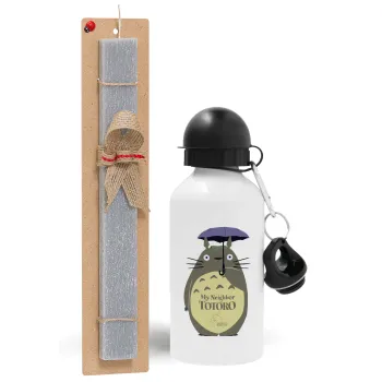 Totoro from My Neighbor Totoro, Πασχαλινή Λαμπάδα με παγούρι μεταλλικό αλουμινίου (500ml) & κερί αρωματικό πλακέ (30cm) (ΓΚΡΙ)