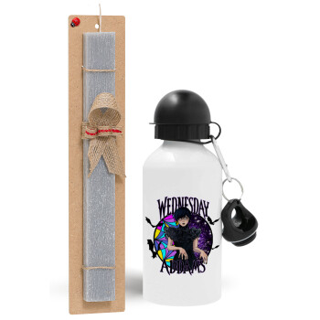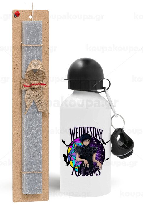 Wednesday Jenna Ortega, Πασχαλινή Λαμπάδα με παγούρι μεταλλικό αλουμινίου (500ml) & κερί αρωματικό πλακέ (30cm) (ΓΚΡΙ)