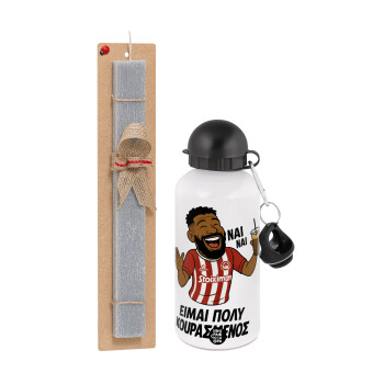 ΑΕΚ εμφάνιση, Πασχαλινή Λαμπάδα με παγούρι μεταλλικό αλουμινίου (500ml) & κερί αρωματικό πλακέ (30cm) (ΓΚΡΙ)