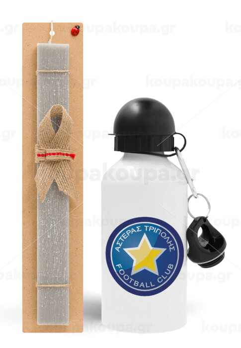 Αστέρας Τρίπολης, Πασχαλινή Λαμπάδα με παγούρι μεταλλικό αλουμινίου (500ml) & κερί αρωματικό πλακέ (30cm) (ΓΚΡΙ)