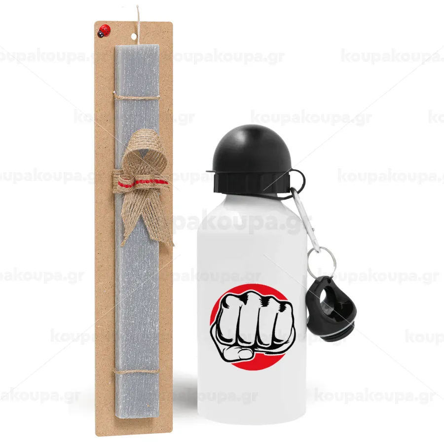 Γροθιά (punch), Πασχαλινή Λαμπάδα με παγούρι μεταλλικό αλουμινίου (500ml) & κερί αρωματικό πλακέ (30cm) (ΓΚΡΙ)