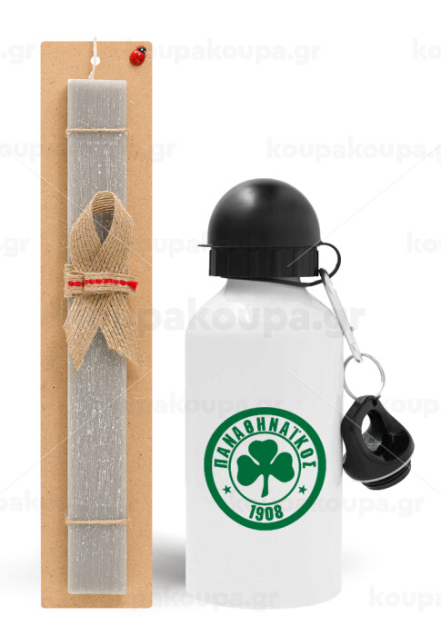 ΠΑΟ Παναθηναϊκός, Πασχαλινή Λαμπάδα με παγούρι μεταλλικό αλουμινίου (500ml) & κερί αρωματικό πλακέ (30cm) (ΓΚΡΙ)