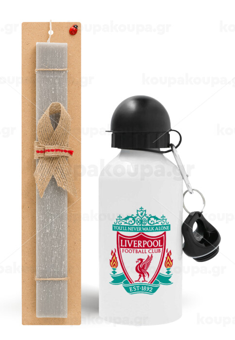 Liverpool, Πασχαλινή Λαμπάδα με παγούρι μεταλλικό αλουμινίου (500ml) & κερί αρωματικό πλακέ (30cm) (ΓΚΡΙ)
