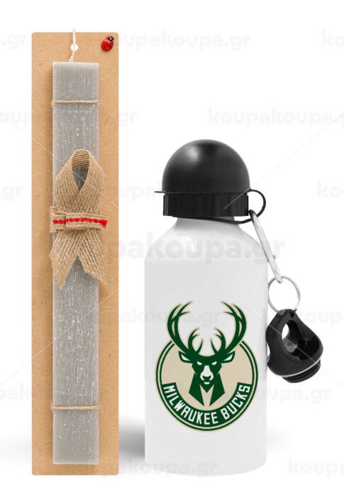 Milwaukee bucks, Πασχαλινή Λαμπάδα με παγούρι μεταλλικό αλουμινίου (500ml) & κερί αρωματικό πλακέ (30cm) (ΓΚΡΙ)