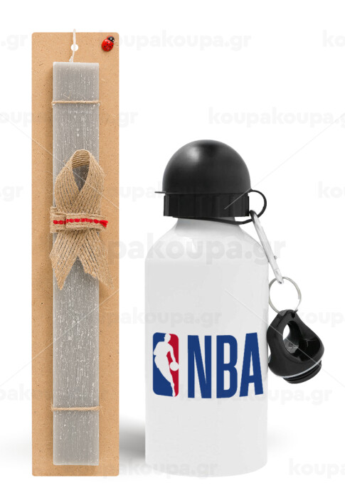 NBA Classic, Πασχαλινή Λαμπάδα με παγούρι μεταλλικό αλουμινίου (500ml) & κερί αρωματικό πλακέ (30cm) (ΓΚΡΙ)