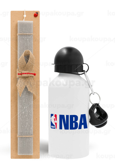 NBA, Πασχαλινή Λαμπάδα με παγούρι μεταλλικό αλουμινίου (500ml) & κερί αρωματικό πλακέ (30cm) (ΓΚΡΙ)