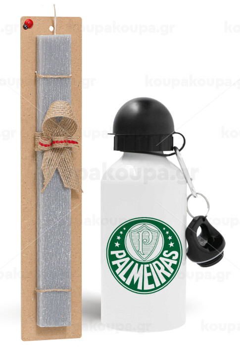 Palmeiras, Πασχαλινή Λαμπάδα με παγούρι μεταλλικό αλουμινίου (500ml) & κερί αρωματικό πλακέ (30cm) (ΓΚΡΙ)