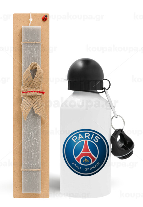 Paris Saint-Germain F.C., Πασχαλινή Λαμπάδα με παγούρι μεταλλικό αλουμινίου (500ml) & κερί αρωματικό πλακέ (30cm) (ΓΚΡΙ)