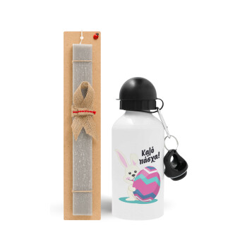Πασχαλινή Λαμπάδα με παγούρι μεταλλικό αλουμινίου (500ml) & κερί αρωματικό πλακέ (30cm) (ΓΚΡΙ) με θέμα Πάσχα