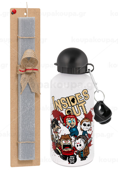 Halloween Inside out, Πασχαλινή Λαμπάδα με παγούρι μεταλλικό αλουμινίου (500ml) & κερί αρωματικό πλακέ (30cm) (ΓΚΡΙ)