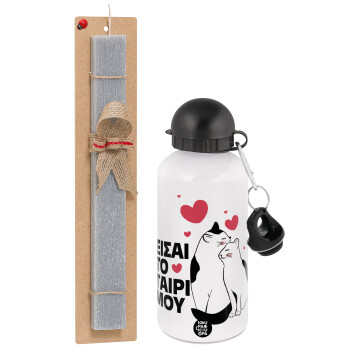 Είσαι το ταίρι μου, Πασχαλινή Λαμπάδα με παγούρι μεταλλικό αλουμινίου (500ml) & κερί αρωματικό πλακέ (30cm) (ΓΚΡΙ)