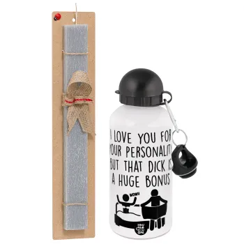 I Love You for Your Personality But that D... Is a Huge Bonus , Πασχαλινή Λαμπάδα με παγούρι μεταλλικό αλουμινίου (500ml) & κερί αρωματικό πλακέ (30cm) (ΓΚΡΙ)