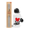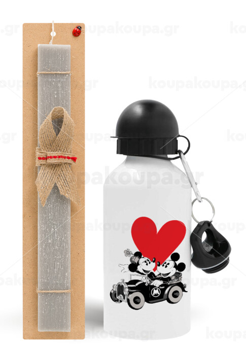 Mickey & Minnie love car, Πασχαλινή Λαμπάδα με παγούρι μεταλλικό αλουμινίου (500ml) & κερί αρωματικό πλακέ (30cm) (ΓΚΡΙ)