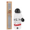 Will you be my Valentine???, Πασχαλινή Λαμπάδα με παγούρι μεταλλικό αλουμινίου (500ml) & κερί αρωματικό πλακέ (30cm) (ΓΚΡΙ)