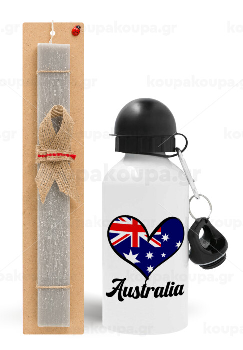 Australia flag, Πασχαλινή Λαμπάδα με παγούρι μεταλλικό αλουμινίου (500ml) & κερί αρωματικό πλακέ (30cm) (ΓΚΡΙ)