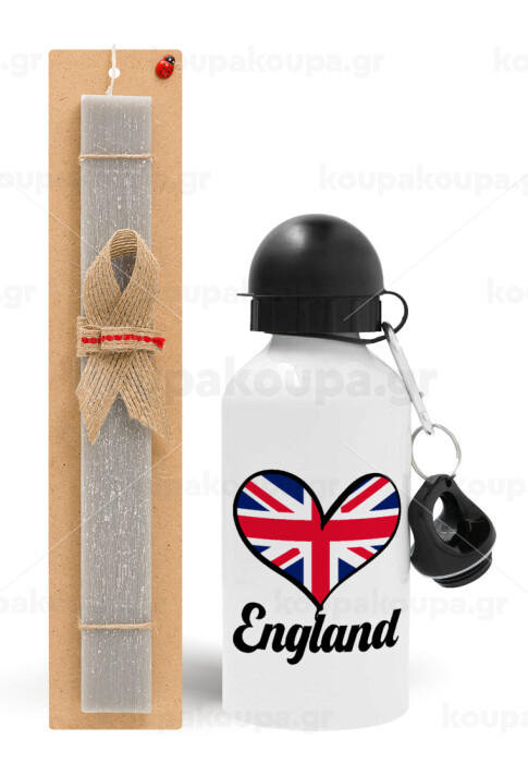 England flag, Πασχαλινή Λαμπάδα με παγούρι μεταλλικό αλουμινίου (500ml) & κερί αρωματικό πλακέ (30cm) (ΓΚΡΙ)