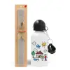 Παιδική ζωγραφιά, Πασχαλινή Λαμπάδα με παγούρι μεταλλικό αλουμινίου (500ml) & κερί αρωματικό πλακέ (30cm) (ΓΚΡΙ)