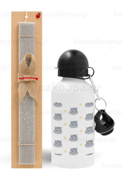 Hippo, Πασχαλινή Λαμπάδα με παγούρι μεταλλικό αλουμινίου (500ml) & κερί αρωματικό πλακέ (30cm) (ΓΚΡΙ)