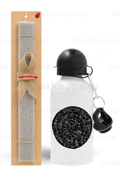 Δίσκος Φαιστού, Πασχαλινή Λαμπάδα με παγούρι μεταλλικό αλουμινίου (500ml) & κερί αρωματικό πλακέ (30cm) (ΓΚΡΙ)