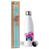 Barbie car, Πασχαλινή Λαμπάδα με παγούρι μεταλλικό αλουμινίου (500ml) & κερί αρωματικό πλακέ (30cm) (ΓΚΡΙ)