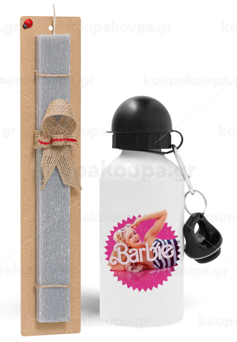 Barbie is everything, Πασχαλινή Λαμπάδα με παγούρι μεταλλικό αλουμινίου (500ml) & κερί αρωματικό πλακέ (30cm) (ΓΚΡΙ)