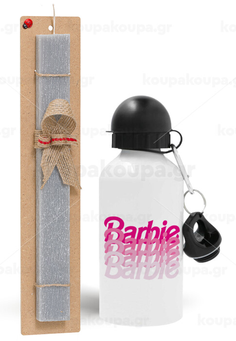 Barbie repeat, Πασχαλινή Λαμπάδα με παγούρι μεταλλικό αλουμινίου (500ml) & κερί αρωματικό πλακέ (30cm) (ΓΚΡΙ)